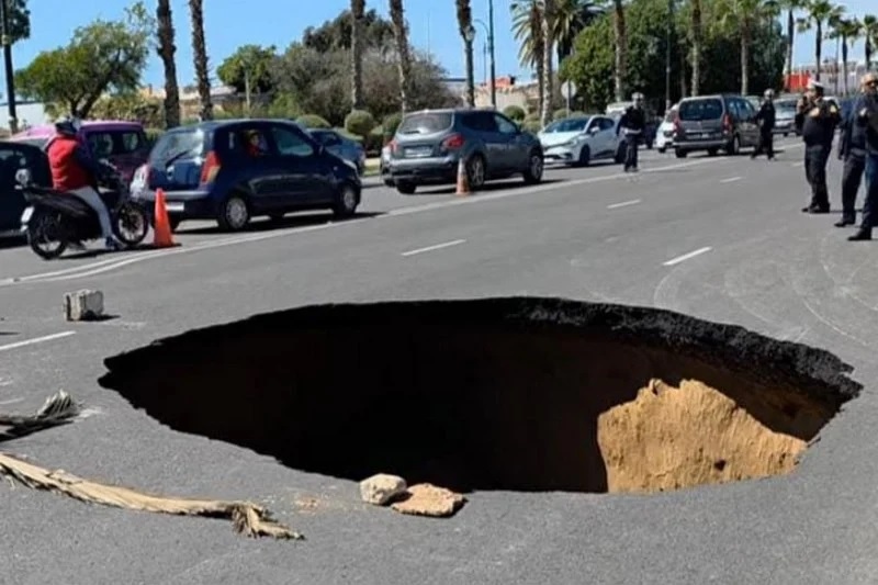 شهد شارع محمد الخامس، بين مدينتي أكادير وإنزكان، انهيارًا أرضيًا أدى إلى ظهور حفرة عميقة يقدر قطرها بحوالي 10 أمتار،…