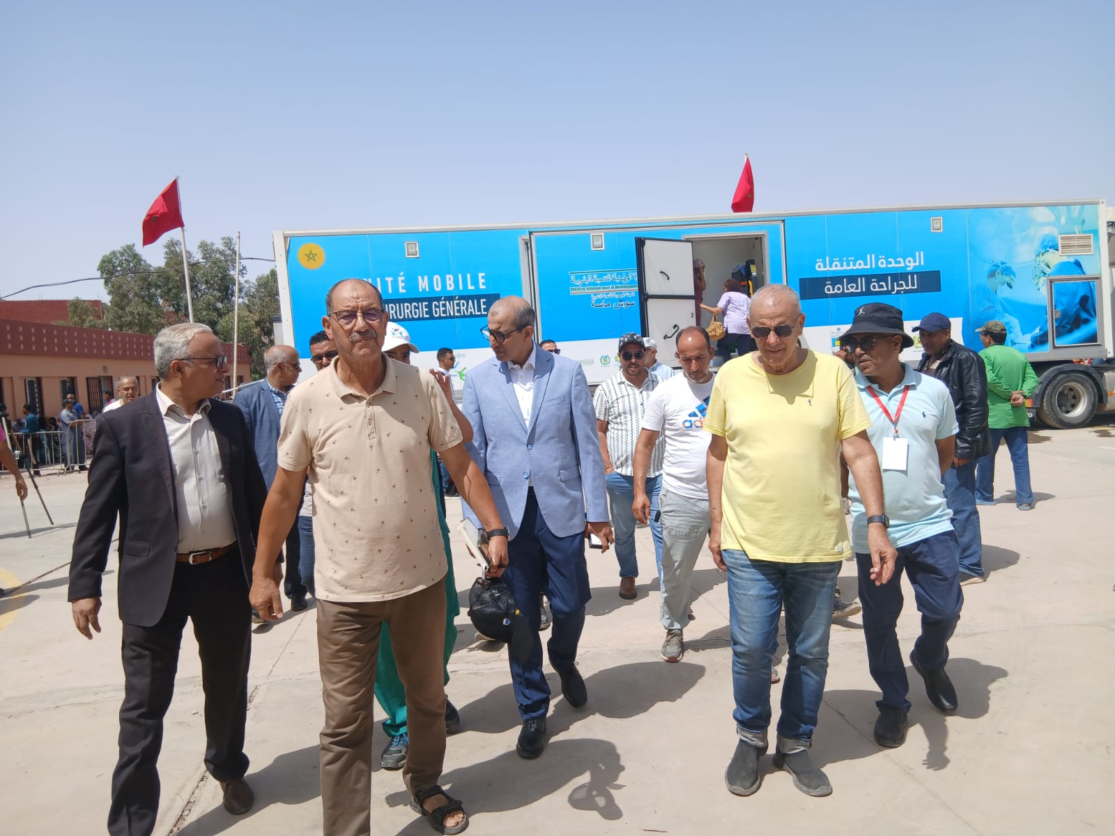 سيدي بيبي .عامل الاقليم يطلع على سير القافلة الطبية المتعددة التخصصات، ونوعية الخدمات المقدمة للمستفيدين.