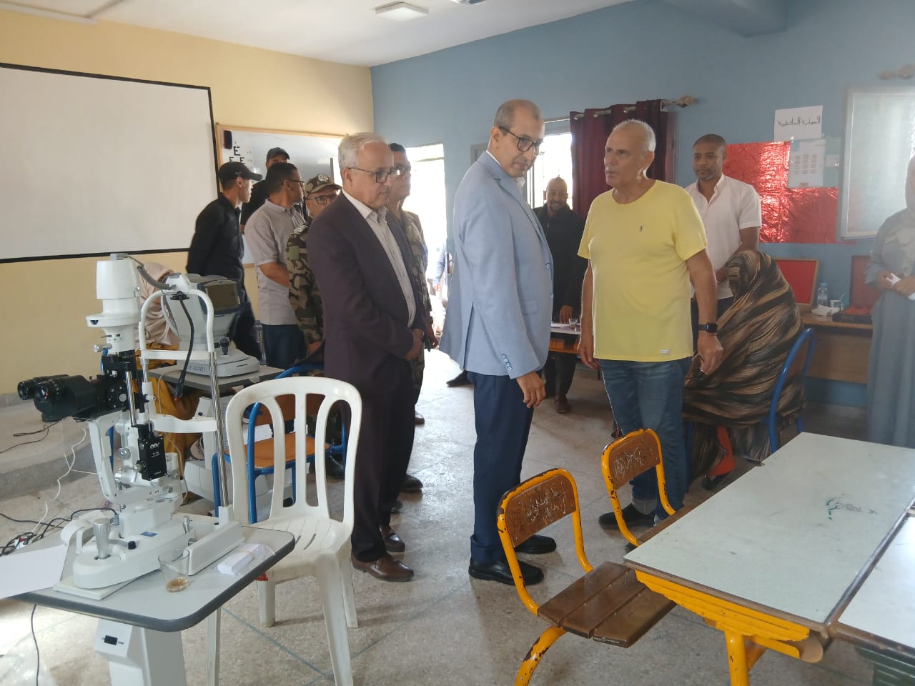 سيدي بيبي .عامل الاقليم يطلع على سير القافلة الطبية المتعددة التخصصات، ونوعية الخدمات المقدمة للمستفيدين.