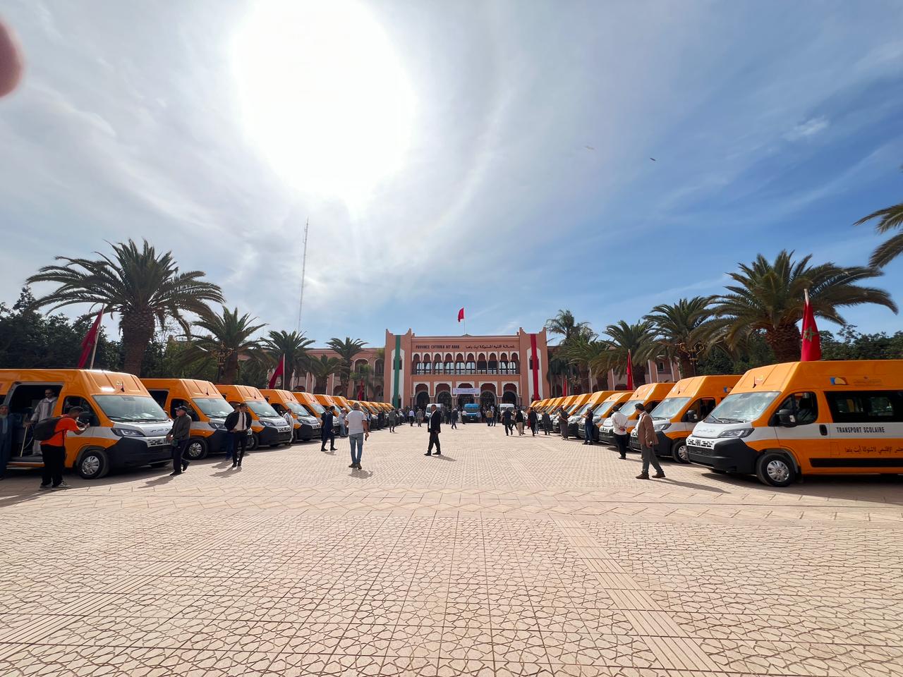 وفي إطار دعم النقل الاجتماعي لعدد من الفئات الهشة بالإقليم، تم توزيع 3 حافلات لنقل الأشخاص ذوي الاحتياجات الخاصة، وهو مشروع رُصد له غلاف مالي قدره 930 ألف درهم، وممول في إطار برامج المبادرة الوطنية للتنمية البشرية الهادفة إلى النهوض بأوضاع المستفيدين من مراكز ذوي الاحتياجات الخاصة، ودعم الخدمات النبيلة التي تقدمها هذه المؤسسات الاجتماعية