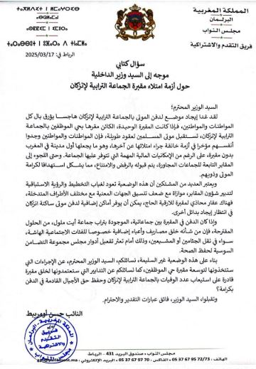 وأكد النائب أن هذه الأزمة تستوجب تدخلًا عاجلًا من الجهات المختصة، خاصة وأن الجماعة تتوفر على إمكانيات مالية كافية لحل المشكل، إلا أن غياب التنسيق بين المتدخلين فاقم الوضع.